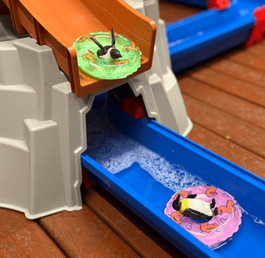 This one was a game-changer. We added small robotic fish that actually swim around the canal. Watching them navigate the twists and turns was mesmerising. We held races, timed their laps, and cheered them on like they were Olympic athletes. It added a whole new layer of excitement and movement. Zuru now make a robo sea turtle, which is adorable. Please stay vigilant with these though as they contain button batteries!